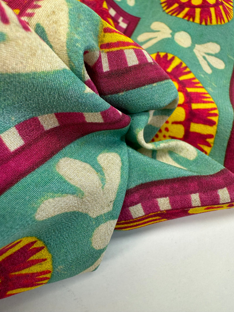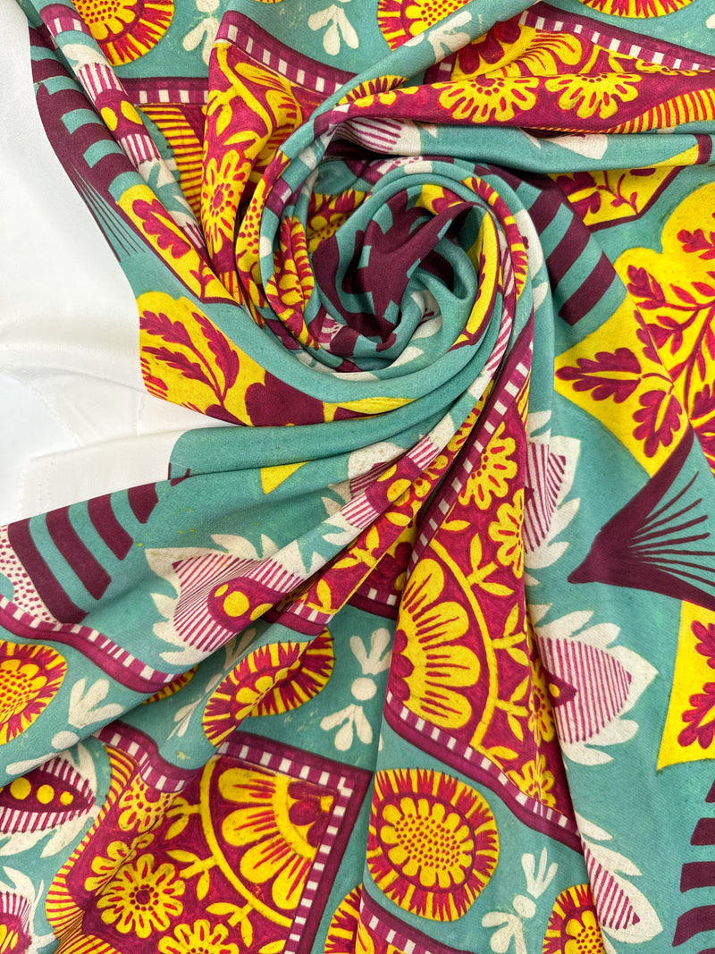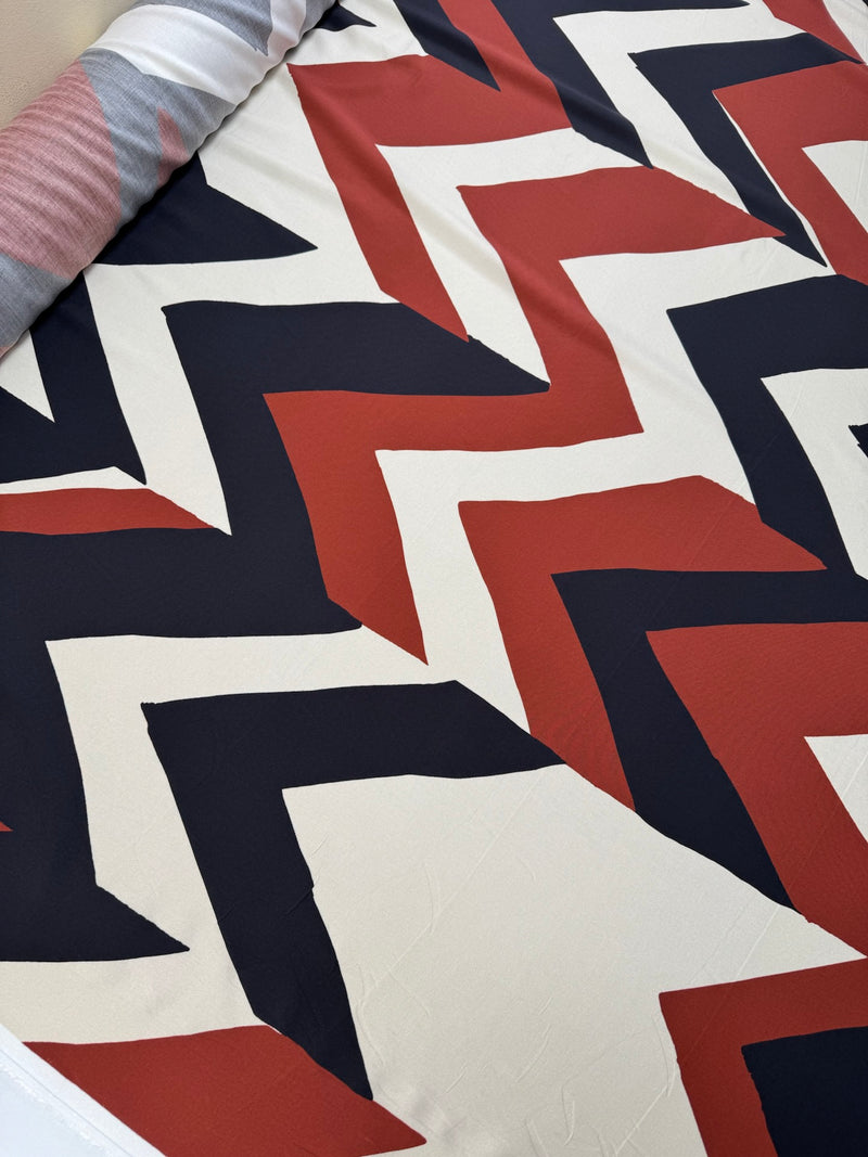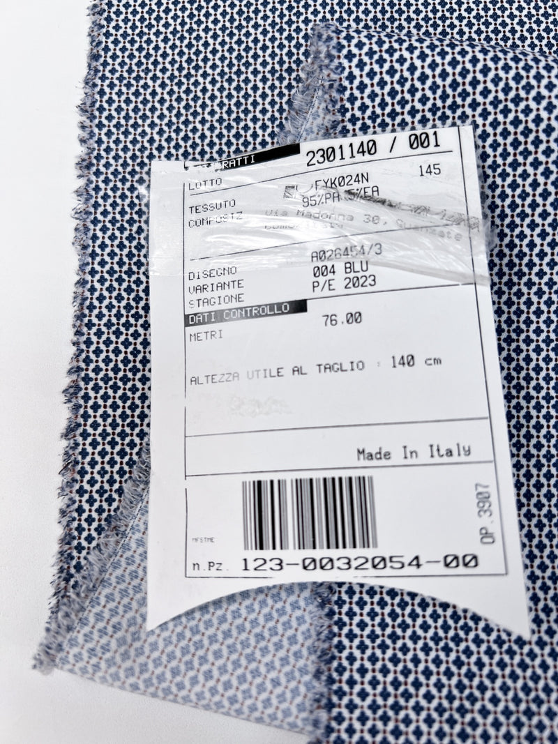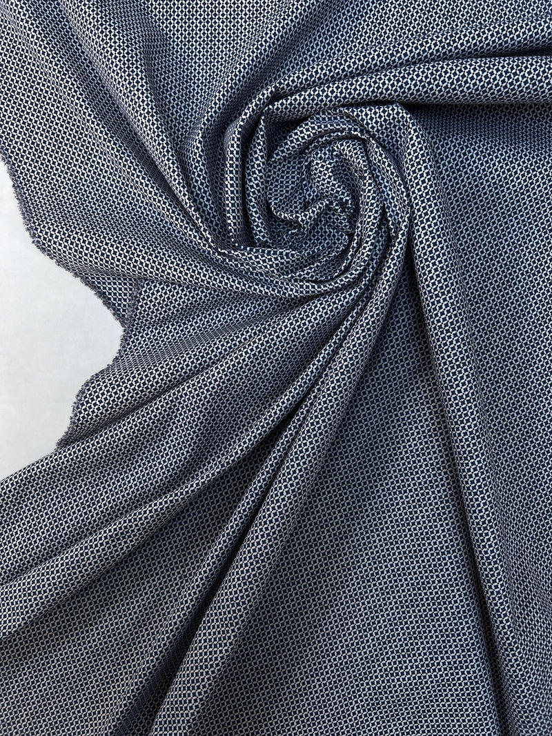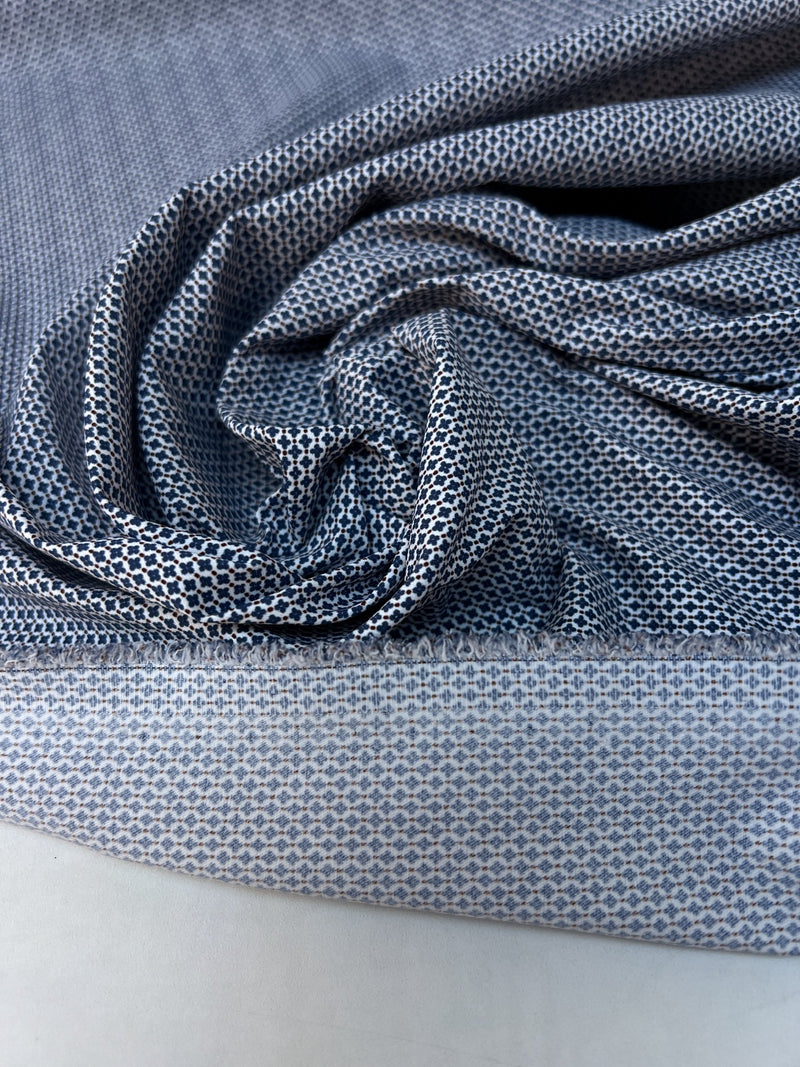 Bedruckter Blau Weiß Polyamid Elastan Crepe