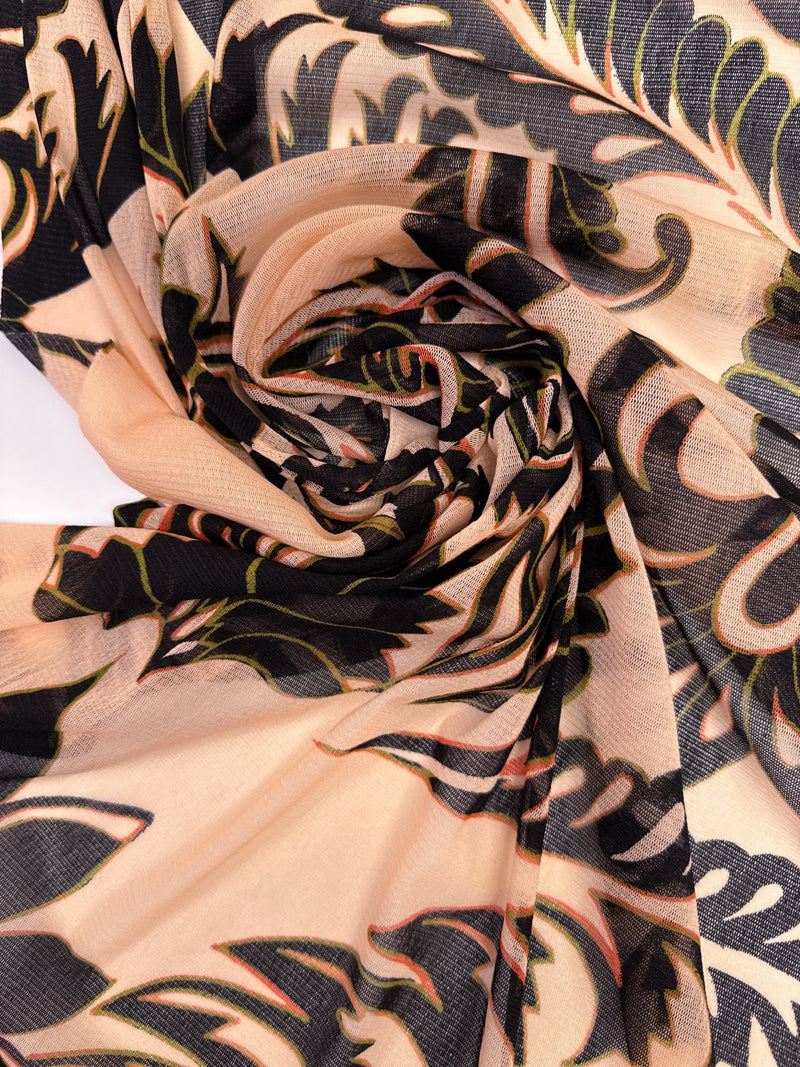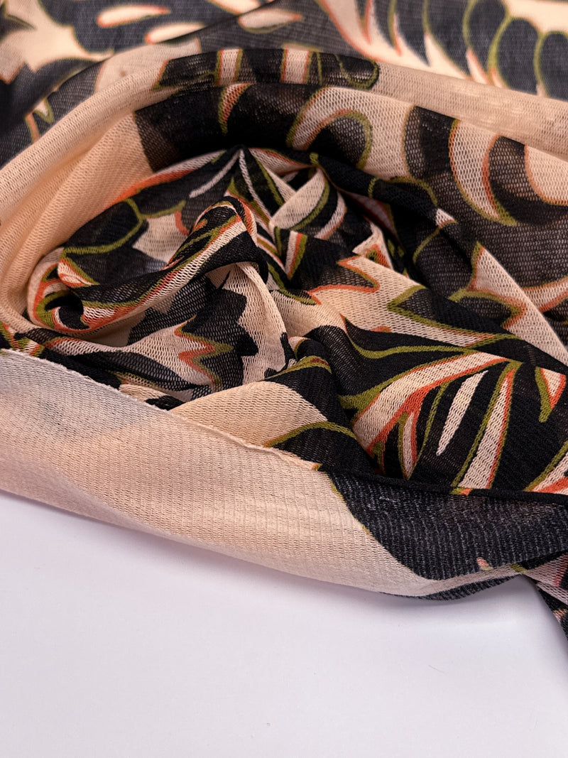 Bedrucktes Beigetöne Schwarz Stretch Netz
