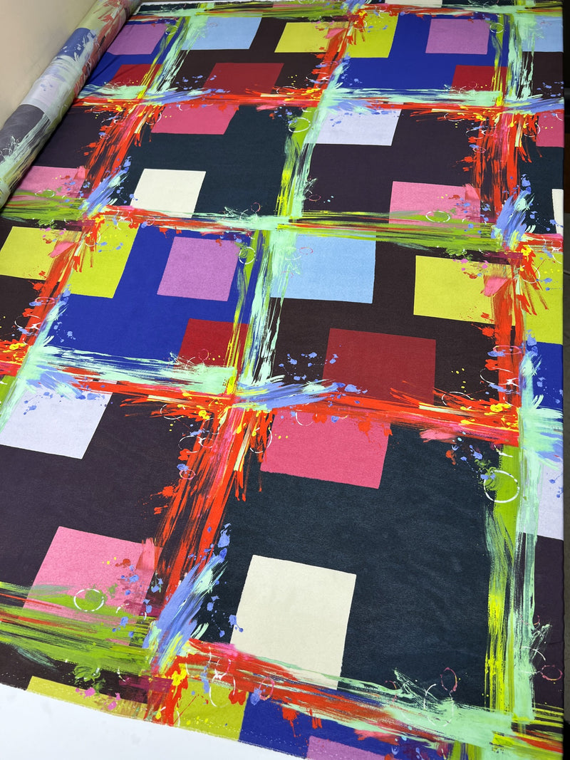 Bedruckter Mehrfarbig Schwarz Seide Crepe