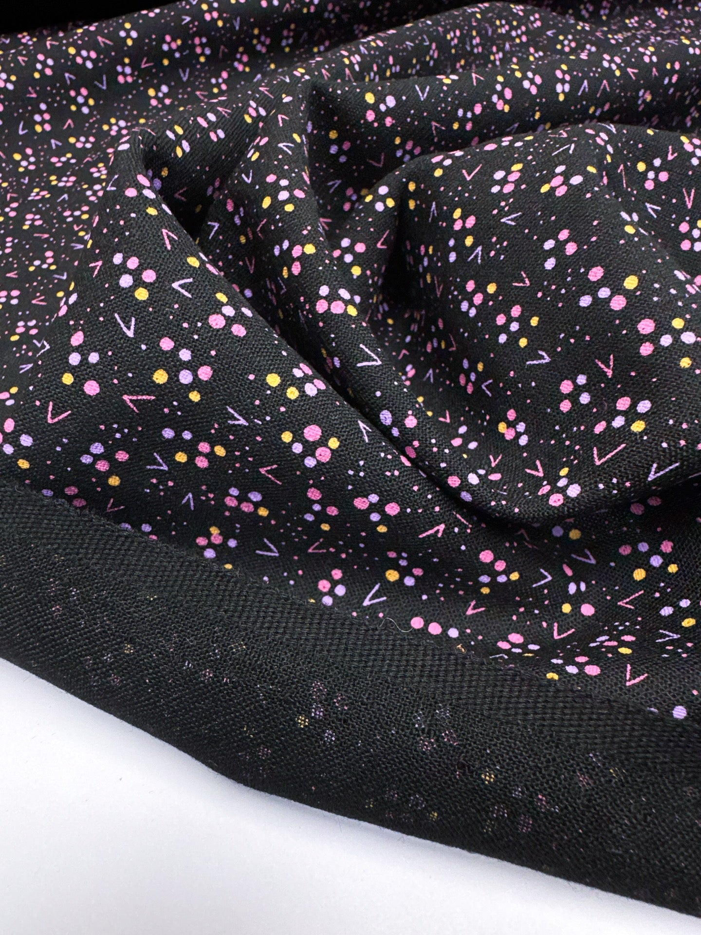 Jungwolle Bedruckt Schwarz Rosa Gewebe