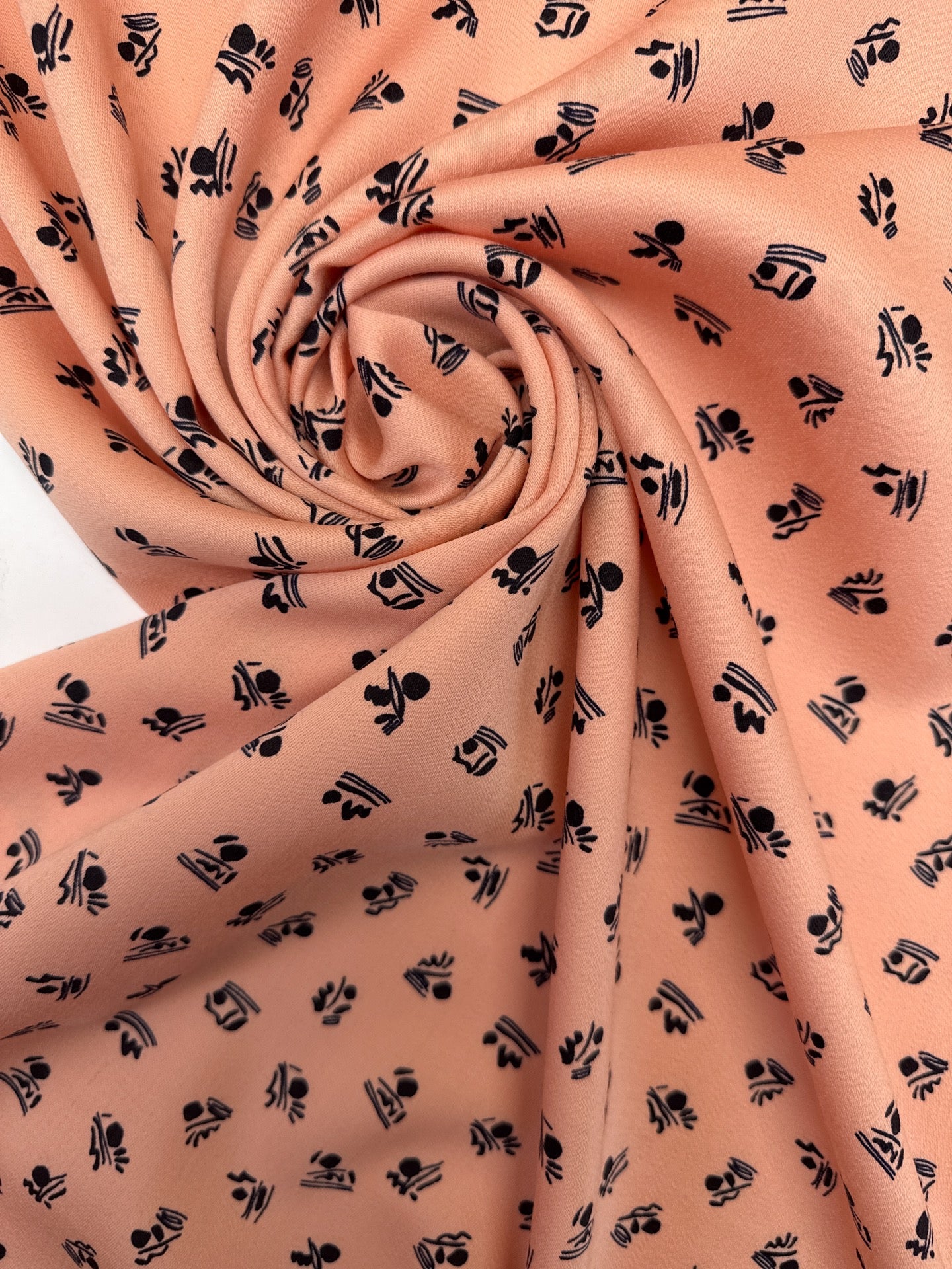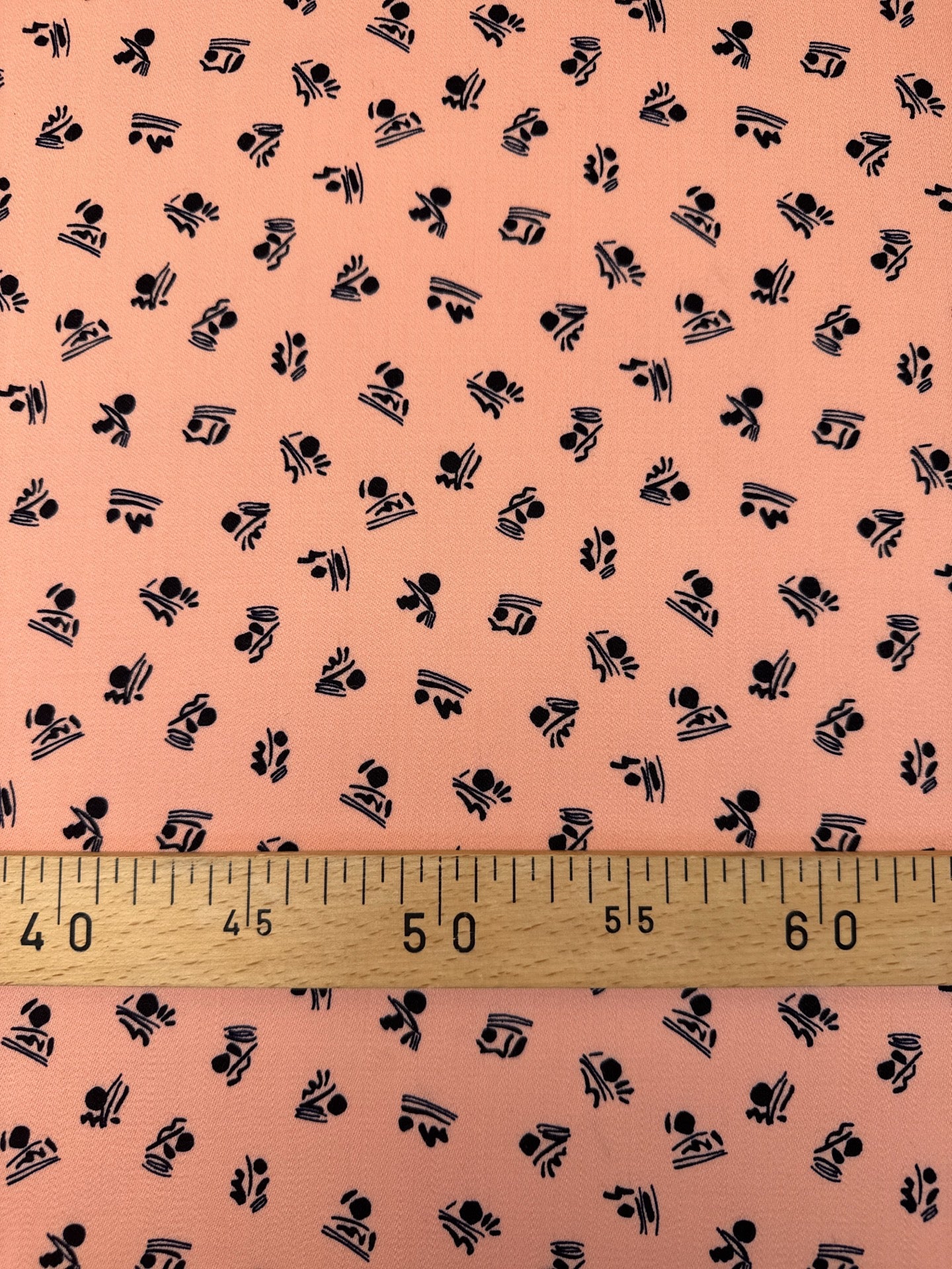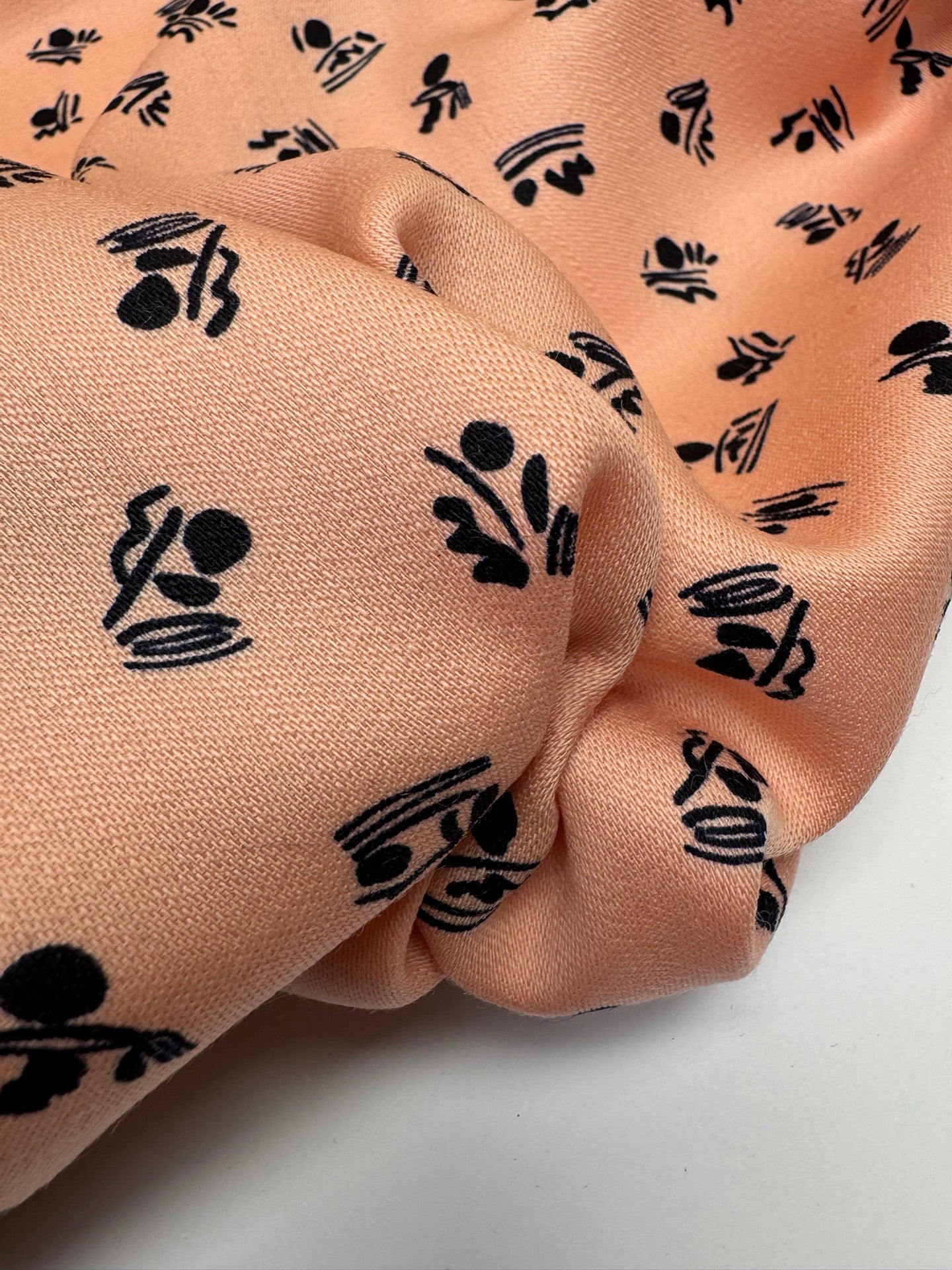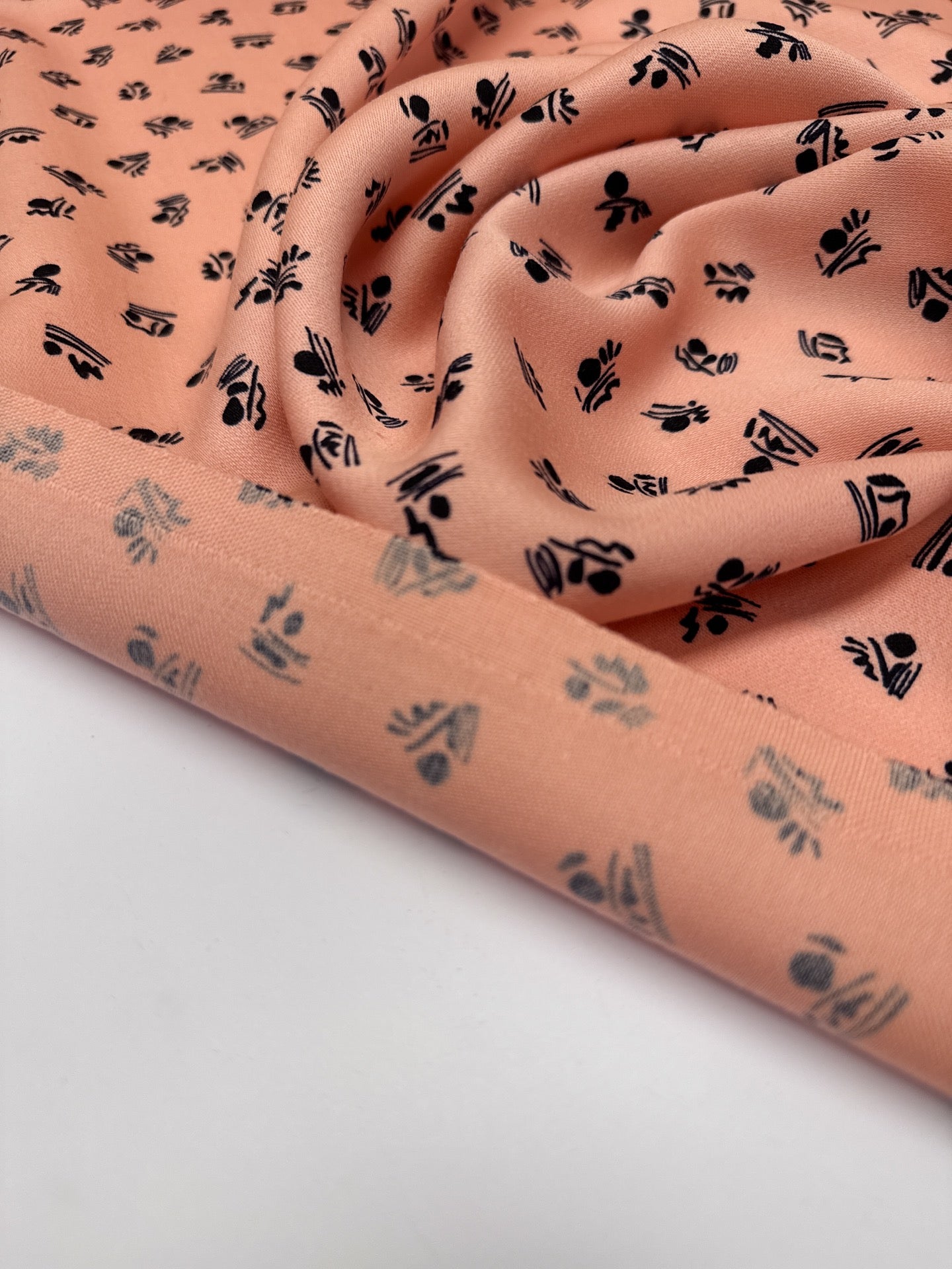 Abstrakt Bedruckt Schwarz Rosatöne Wolle Satin