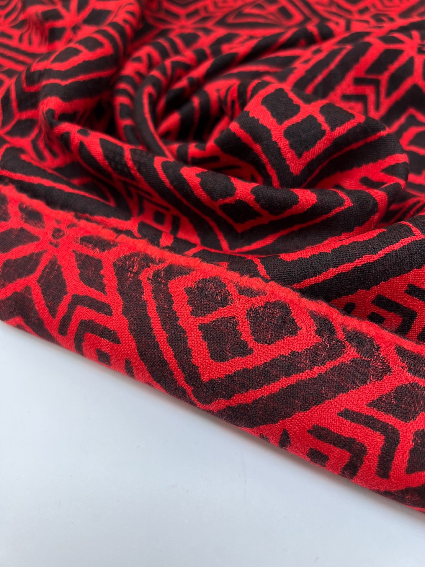 Rottöne Schwarz Wollstoff Geometrisch