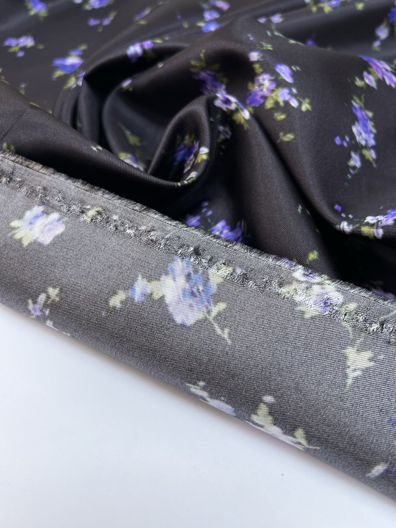 Floral Bedruckter Violett Schwarz Viskose Twill