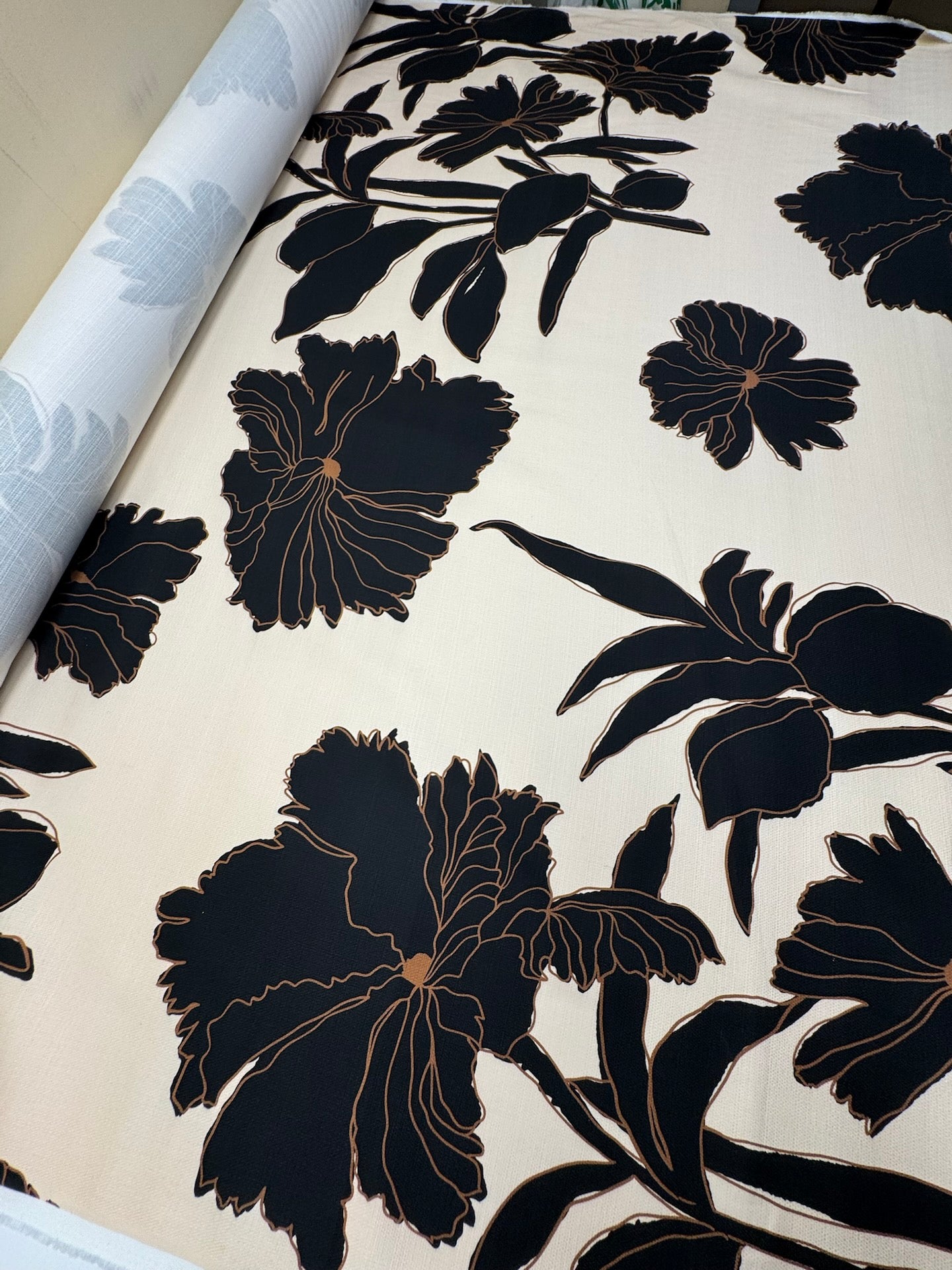 Floral Beige-Schwarz Baumwolle Gewebe