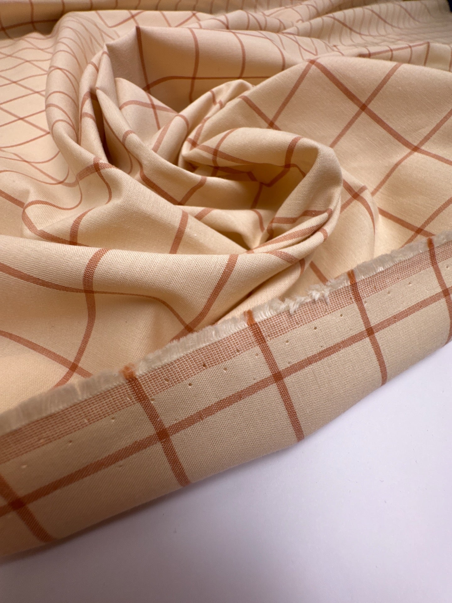 Coton Tissé À Carreaux Brun-Beige