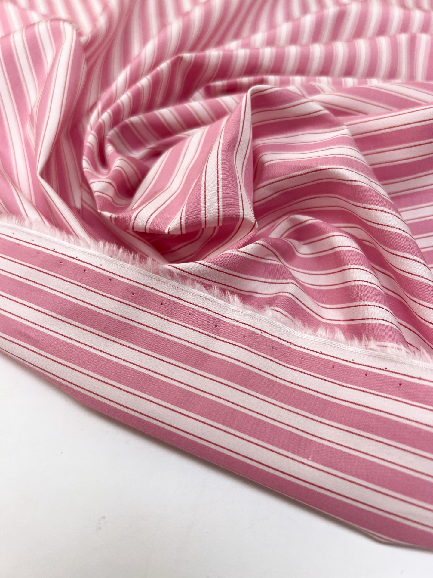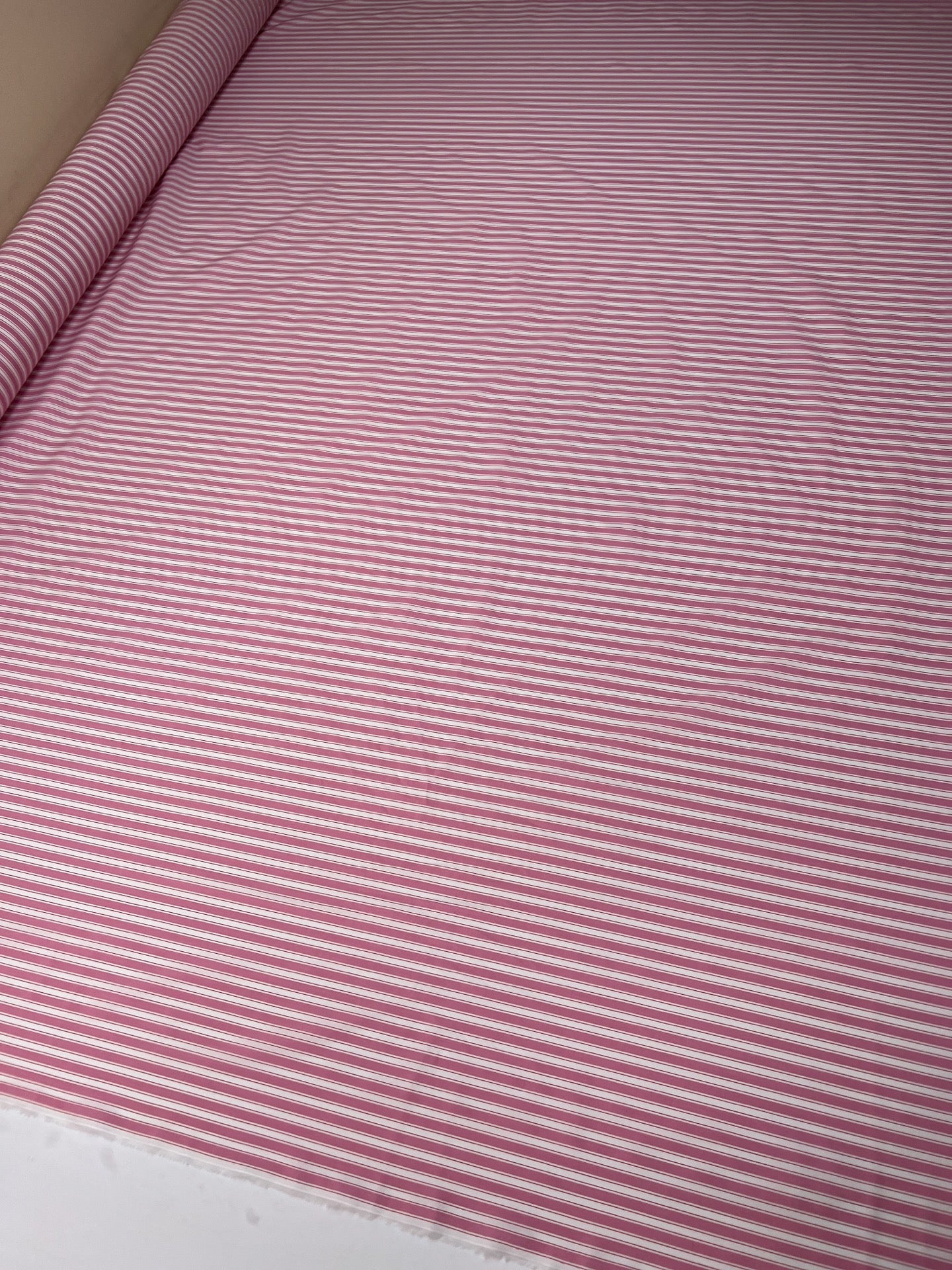 Popeline Coton Rose Blanc Rayée