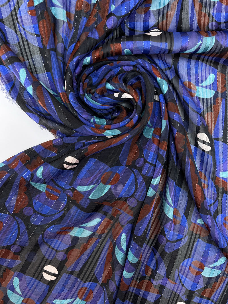 Tricot À Carreaux Beige-Bleu Viscose Mélangée