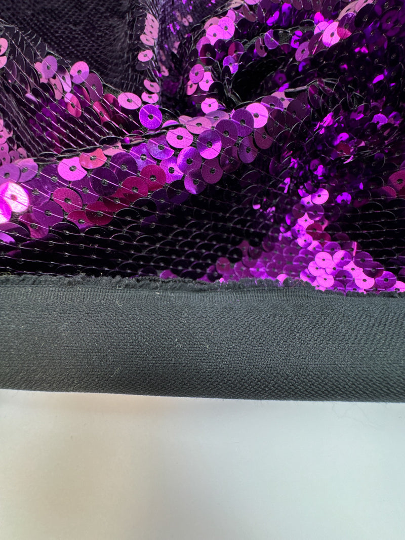 Дублированная черно-розовая полиэстеровая ткань с пайетками